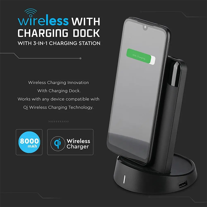 V-Tac POWER BANK 8000MAH INCARCARE WIRELESS MODEL STAND - NEGRU