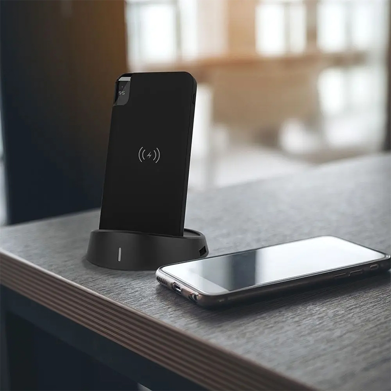 Powerbank cu o capacitate de 8000 mAh, incarcare wireless, model cu stand
