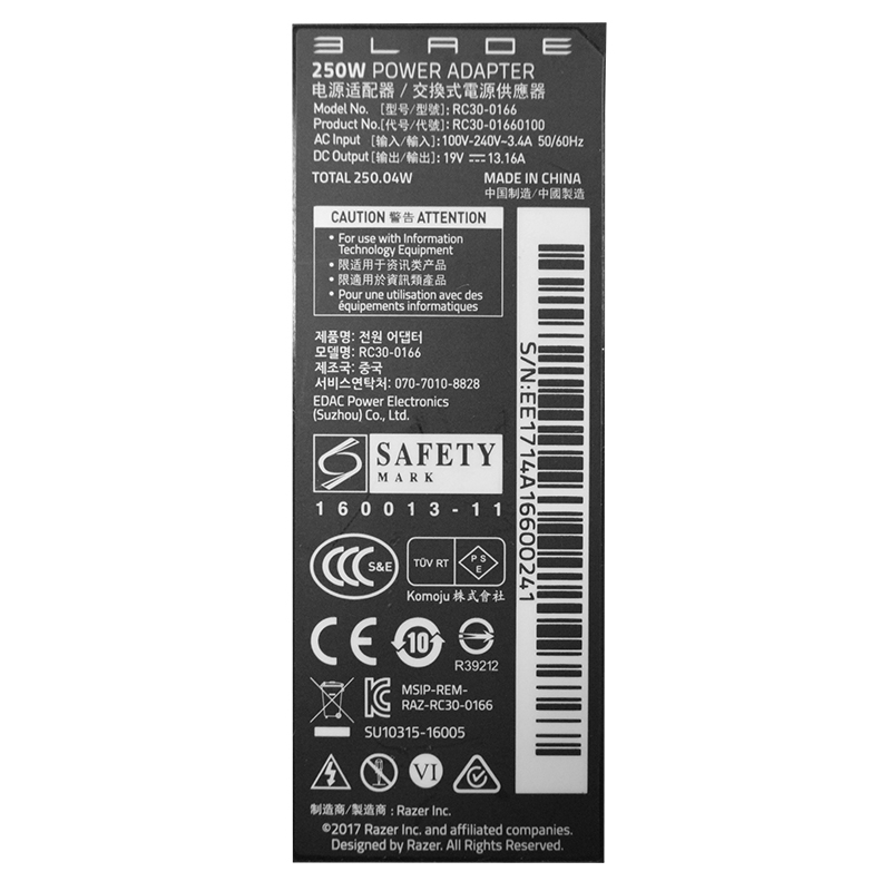 Alimentator second-hand pentru laptop RAZER 19.5V 13.16A 250W RC30-00166