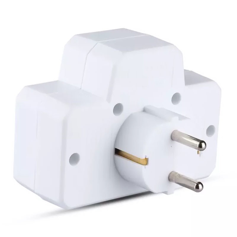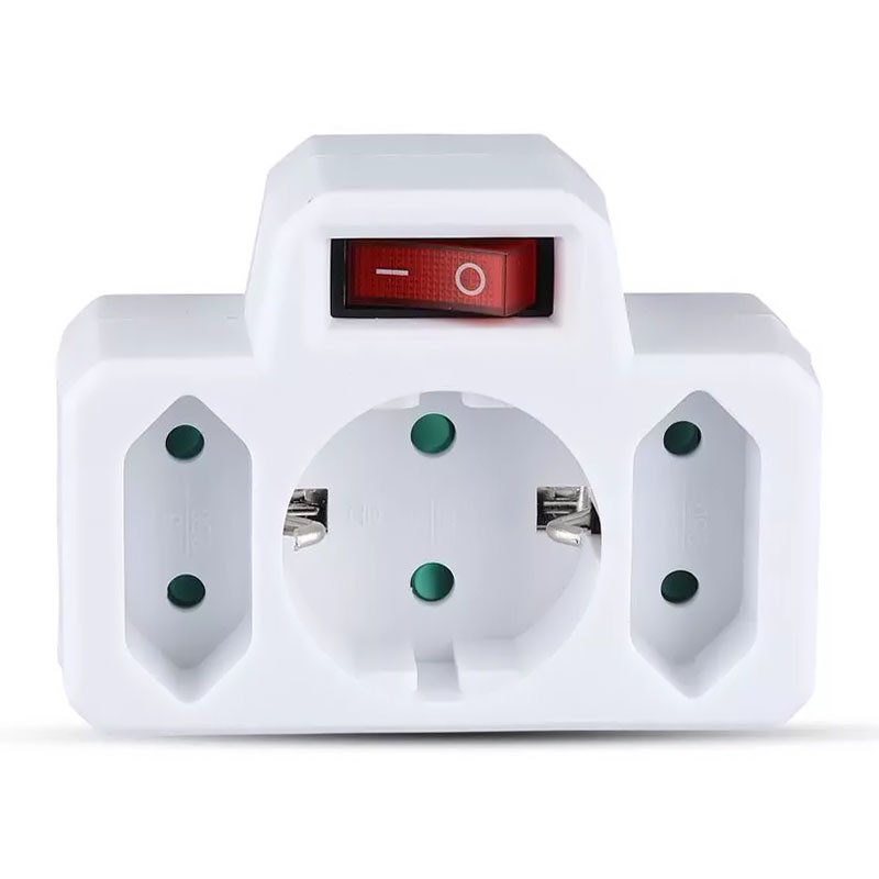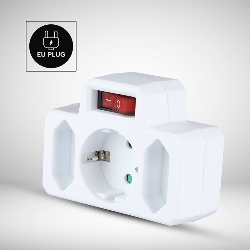 Adaptor cu intrerupator, 3 prize - 1 x schuko 16A max + 2 x EURO - 2 x 2.5A max.