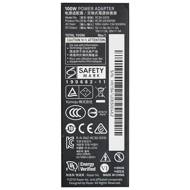 Alimentator second-hand pentru laptop RAZER 20V 5A 100W RC30-0310