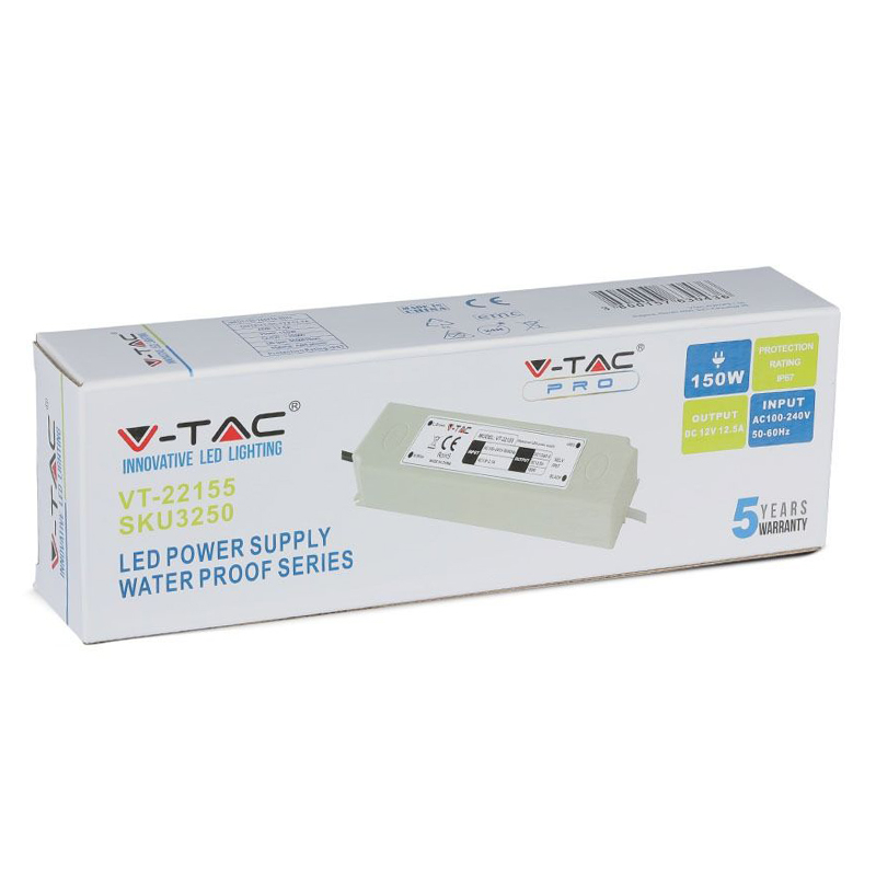 V-Tac Sursă Alimentare LED 12V 150W 12.5A IP67 V-TAC pentru Benzi LED SKU-3250