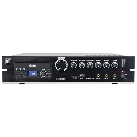 Amplificator versatil care combina capacitatea de citire DVD player cu citirea dispozitivelor stick USB, carduri SD/MS/MMC. Ideal pentru utilizare in baruri, restaurante, hoteluri, etc.