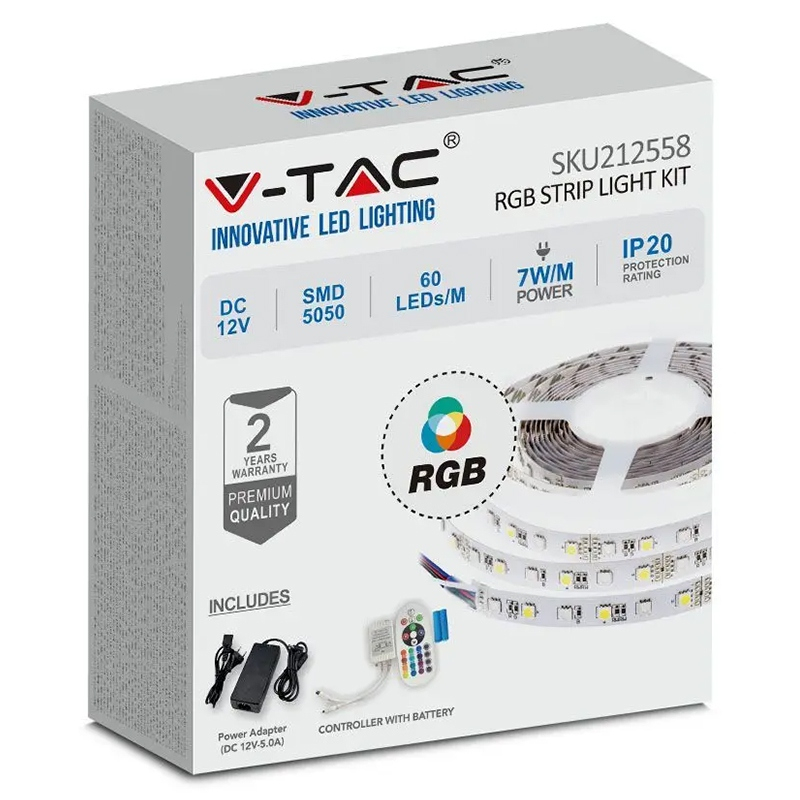 V-Tac KIT BANDA LED SMD5050 RGB 60LED/M IP20 5M