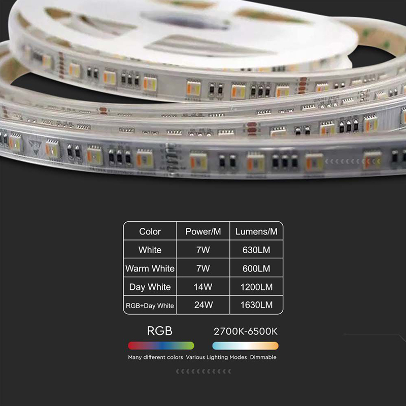 V-Tac BANDA LED 24V SMD5050 60LED/M 3IN1 RGB + ALB IP65 5M