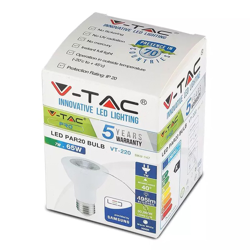V-Tac BEC LED 7W PAR20 E27 4000K ALB NEUTRU