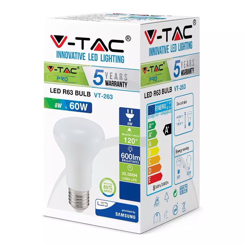 V-Tac BEC LED R63 E27 8W 3000K ALB CALD, CIP SAMSUNG