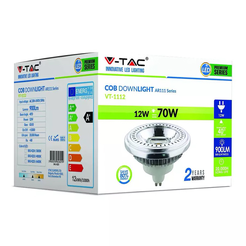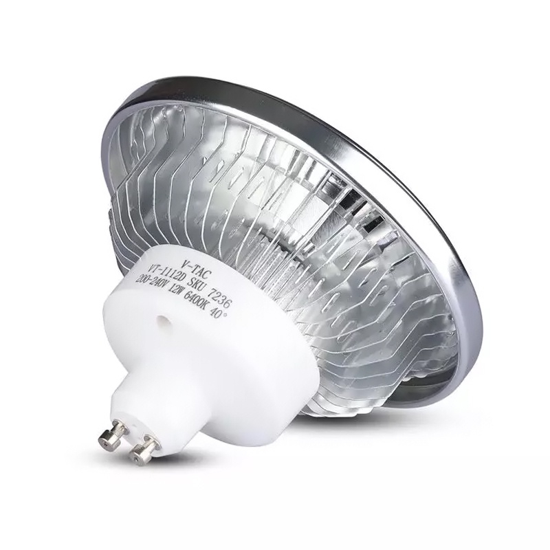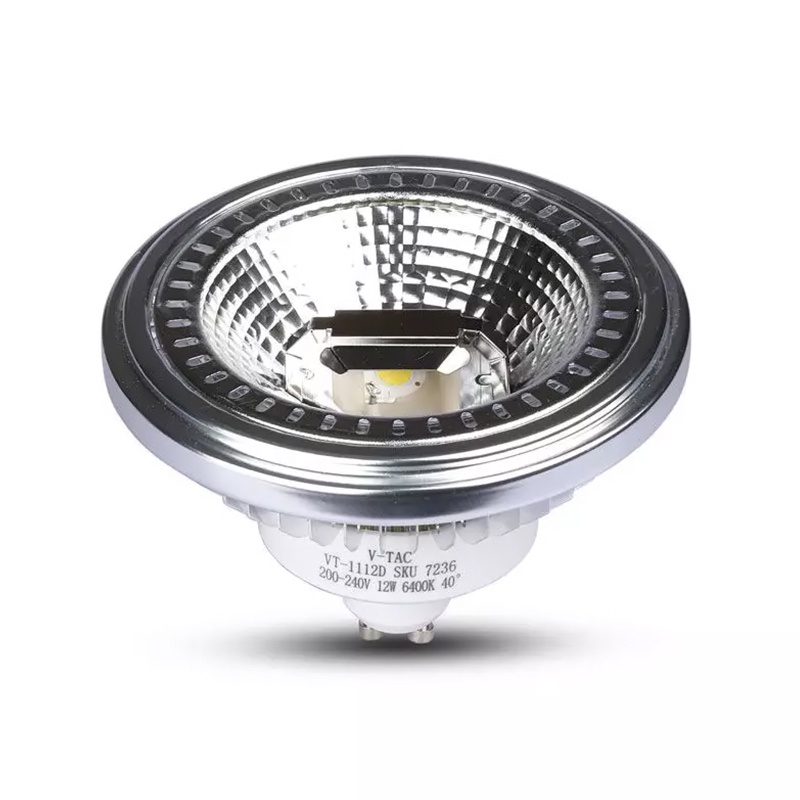 Spot cu LED, elegant, forma AR111, cu corpul din aluminiu + plastic Caracteristici tehnice Putere: 12 W (echivalent cu 60 W clasic) Flux luminos: 900 lumeni Temperatura de culoare: 4000 K (alb neutru) Unghi dispersie luminã: 40 grade Diametru gaurã montaj:: 105 mm Duratã lungã de viațã: 20.000 de ore LED COB Grad protecție IP: IP20 Dimensiuni: diametru 91 mm x 111 mm Greutate: 0.18 kg Temperatura de funcționare: -20 ... + 45 ° c Alimentare: 220-240V, 50Hz