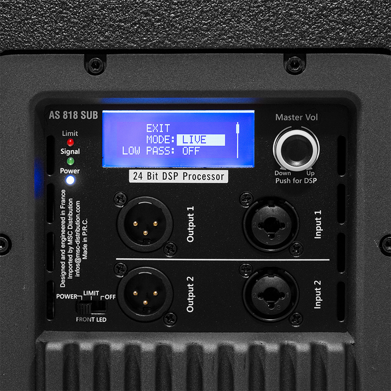 Dispunând de DSP de înaltă calitate, cu o rată de eșantionare de 48 kHz și o rezoluție de 24 de biți, AS 818 SUB oferă procesare digitală avansată pentru performanțe audio excepționale .
