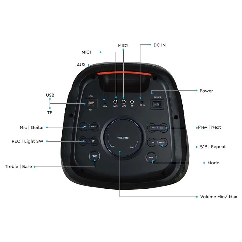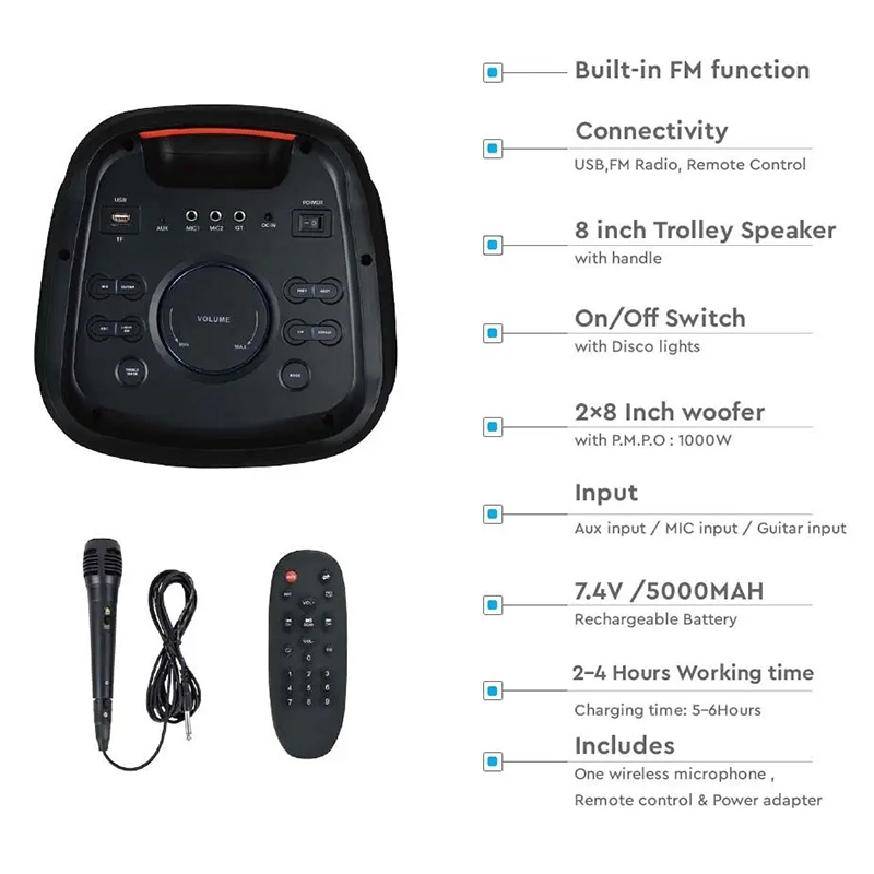 Difuzor reîncărcabil cu cărucior proiectat cu dual 8 inchi cu mâner;