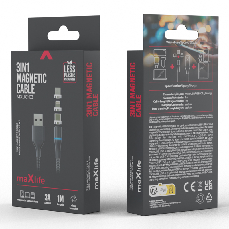 Cablul magnetic Maxlife este o alternativă inovatoare și convenabilă la cablurile clasice care se introduc în interfață. Atașamentul magnetic permite ca cablul să fie atras cu o forță optimă. Acest lucru garantează o conexiune stabilă, fără interferențe.