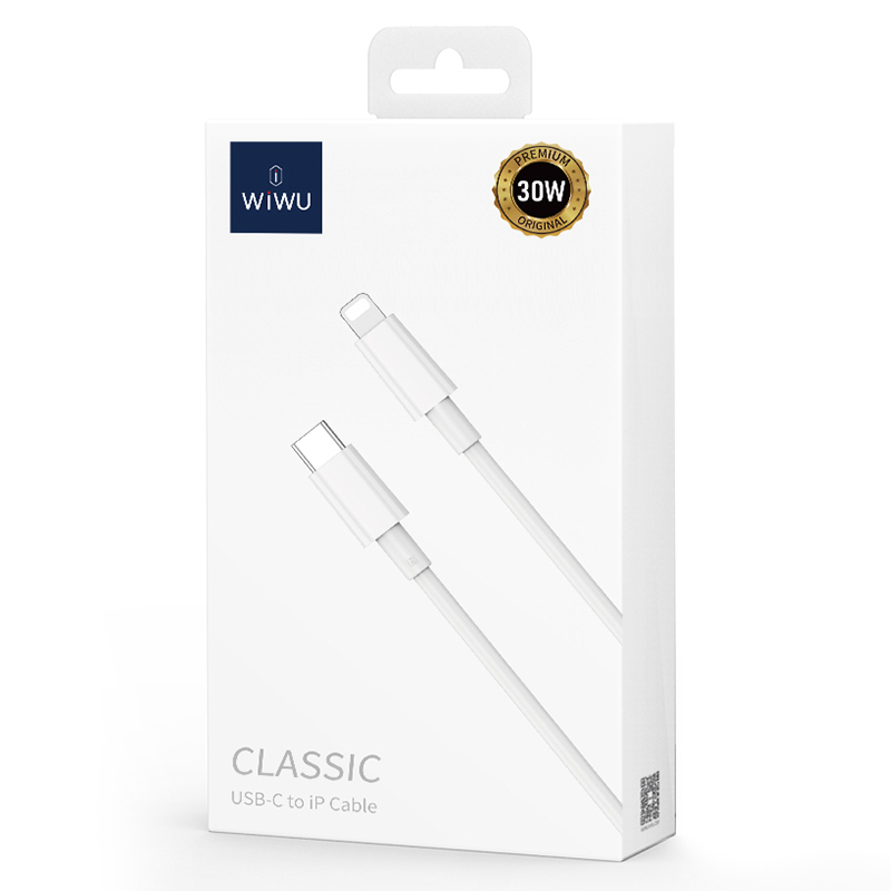 WIWU C008 este un cablu echipat cu conectori USB-C la Lightning cu o putere maxima de 30W. Este realizat dintr-un amestec de doua materiale, ABS si PC, ceea ce mareste durabilitatea produselor la temperaturi extrem de diferite.