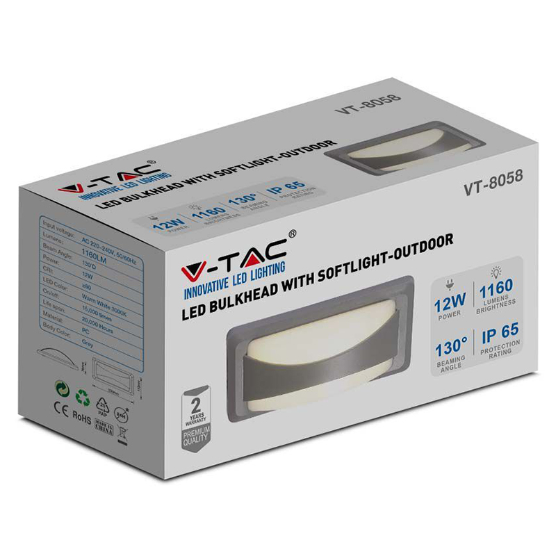 V-Tac CORP ILUMINAT EXTERIOR 12W IP65 6400K ALB RECE