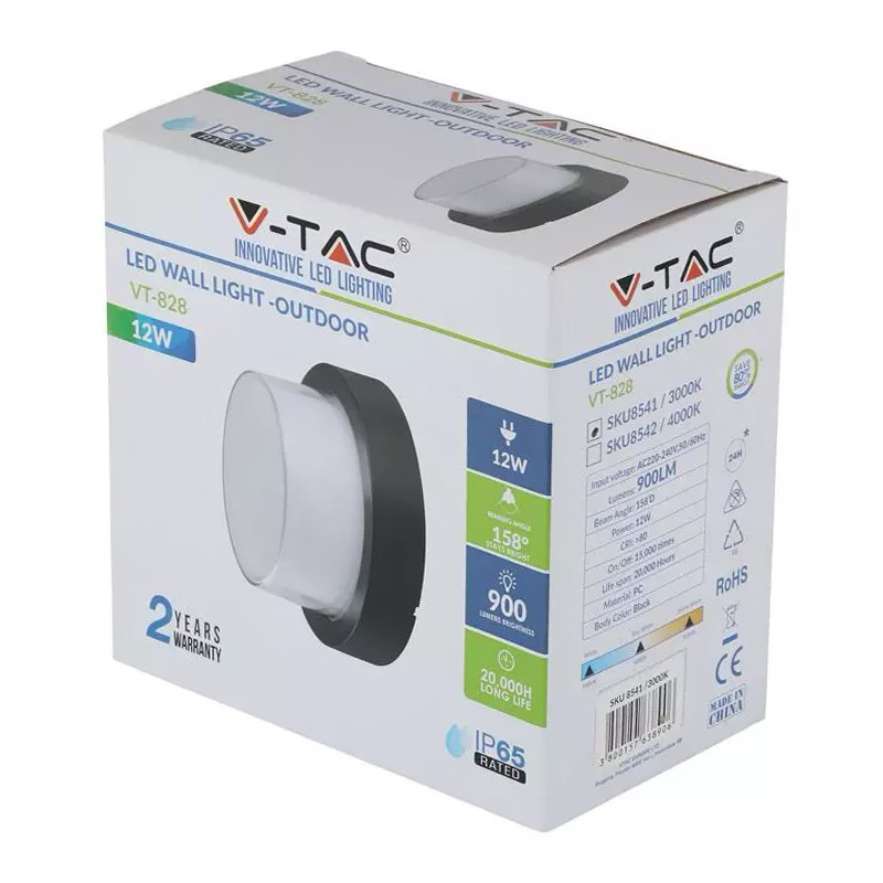 V-Tac LAMPA LED 12W IP65 4000K ALB NEUTRU - NEGRU