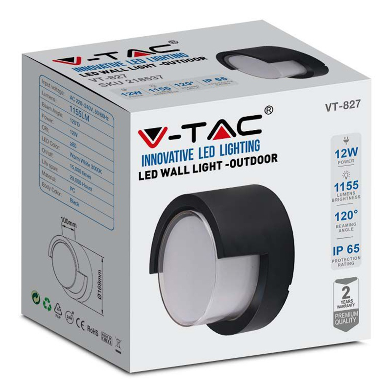 V-Tac LAMPA LED 12W IP65 4000K ALB NEUTRU - NEGRU