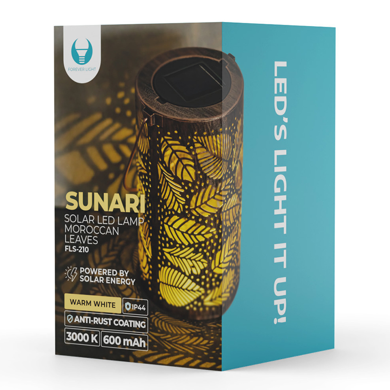 Iluminează-ți împrejurimile cu eleganta lampă solară LED SUNARI FLS-210, combinând o strălucire subtilă de 12 lumeni cu un model excepțional inspirat de frunzele marocane. Cu dimensiuni compacte de 120x120x200 mm, se potrivește perfect în grădină, balcon sau terasă.