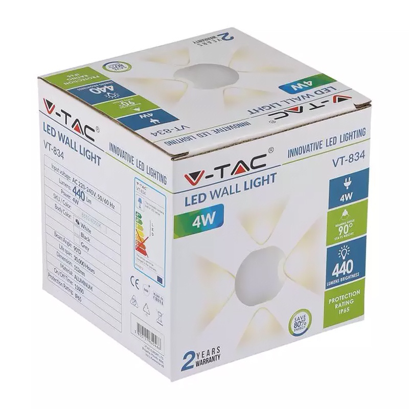 V-Tac LAMPA LED PERETE 4W IP65 3000K ALB CALD