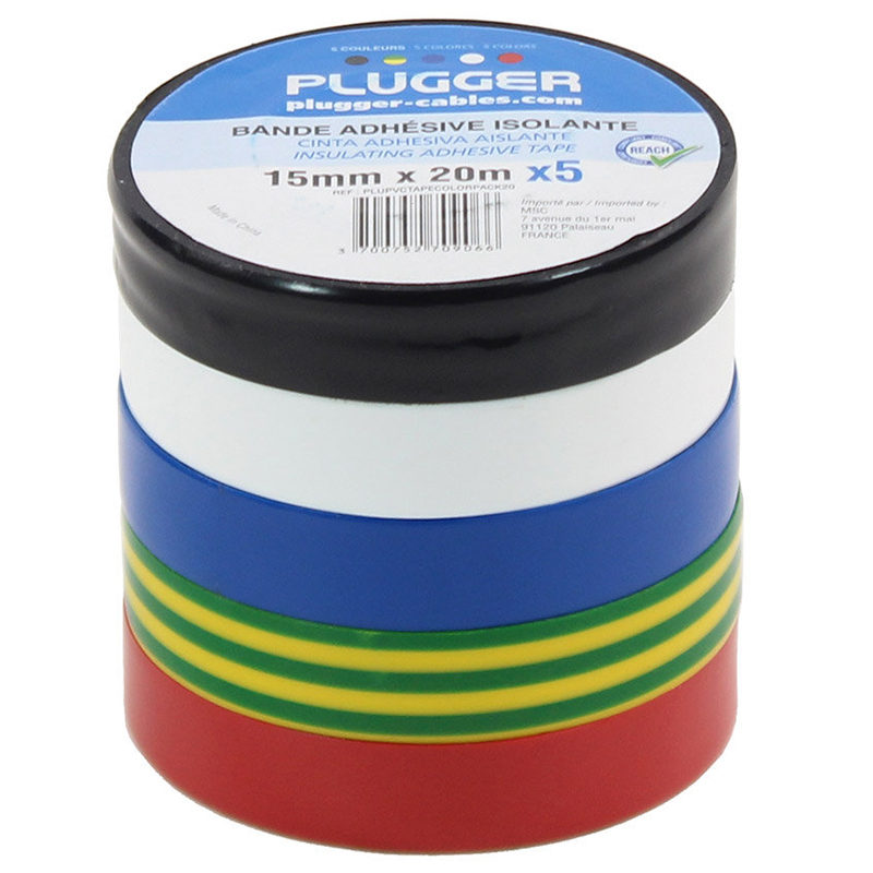 Pachet de 5 role de bandă adezivă izolatoare PVC: negru, galben și verde, albastru, alb, roșu