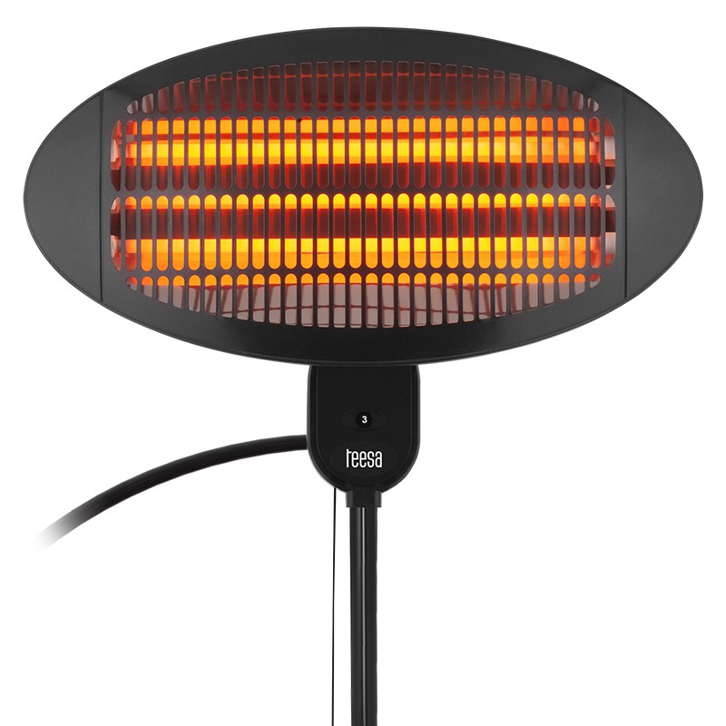 • 3 moduri de încălzire: ◦ 650W ◦ 1300W ◦ 2000W • Încălzire rapidă • Montare pe suport sau pe perete • Numai pentru utilizare în exterior • Întrerupător de siguranță în caz de răsturnare • Element de încălzire: tuburi de cuarț • Clasa de protecție: IPX4 • Înclinare unghi: 45° • Reglare înălțime suport: 1,3 – 2,1 m • Diametru suport: 50 cm • Dimensiuni element de încălzire: 41 x 1 x 1 cm • Greutate element de încălzire: 0,14 kg • Lungime cablu de alimentare: 180 cm • Alimentare: 230 V / 50 Hz