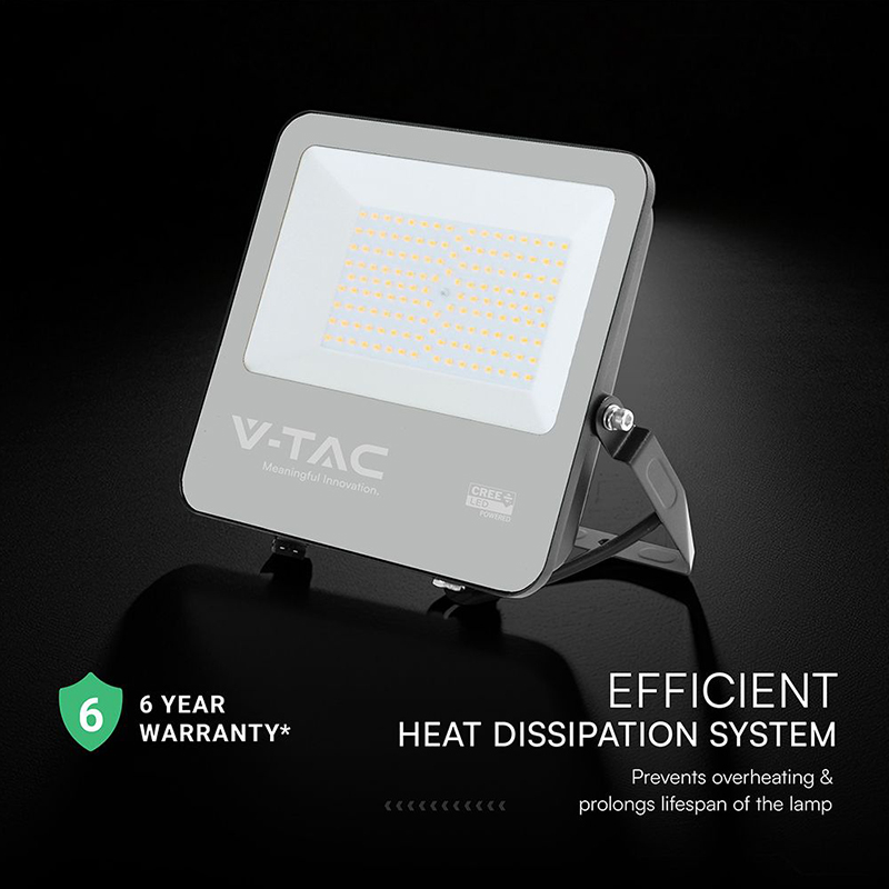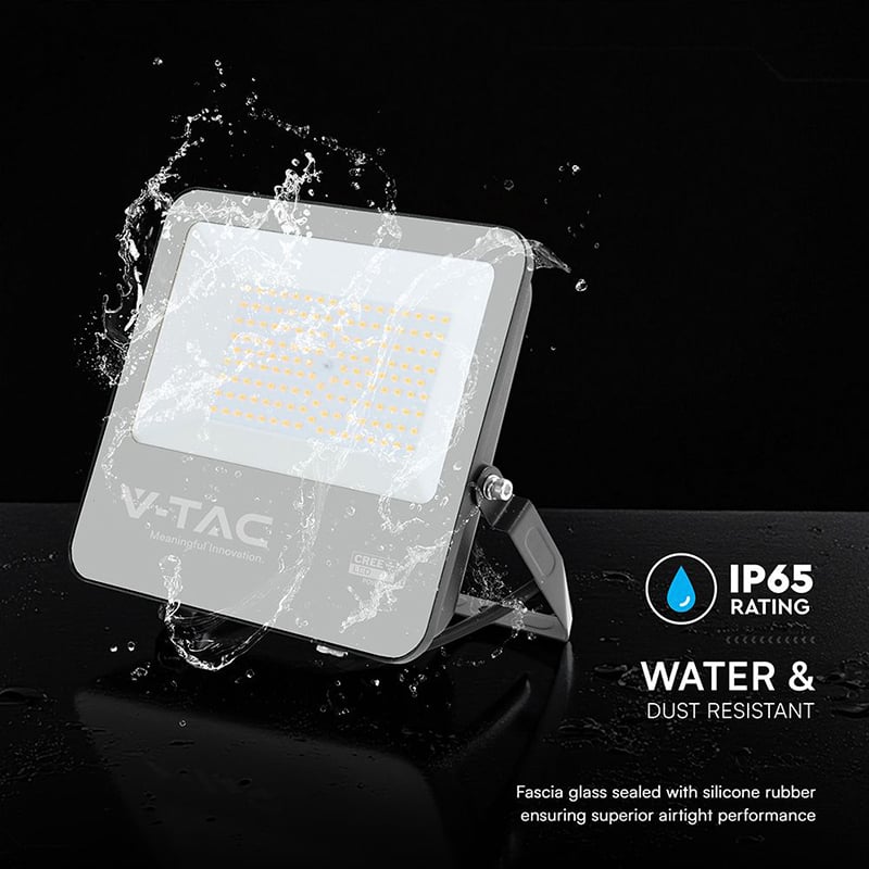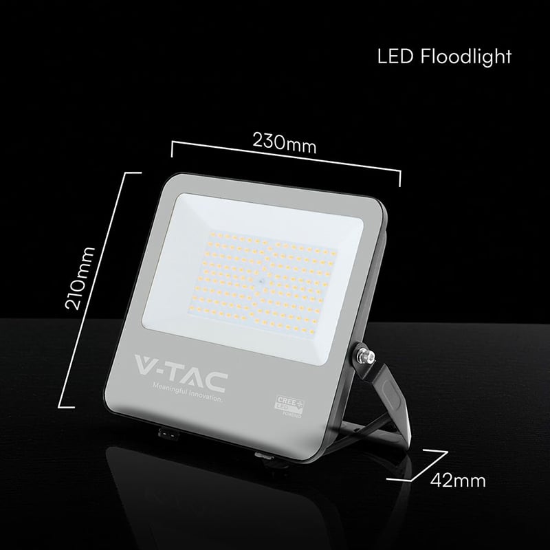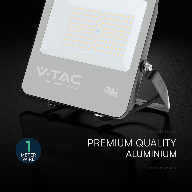 V-Tac REFLECTOR LED 100W 135LM/W 6500K IP65 CABLU 1M CIP CREE - NEGRU/GRI