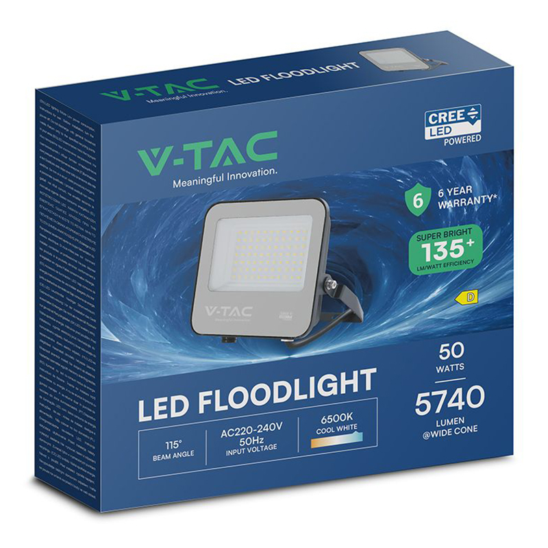 REFLECTOR LED 50W 135LM/W 6500K IP65 CABLU 1M CIP CREE - NEGRU/GRI