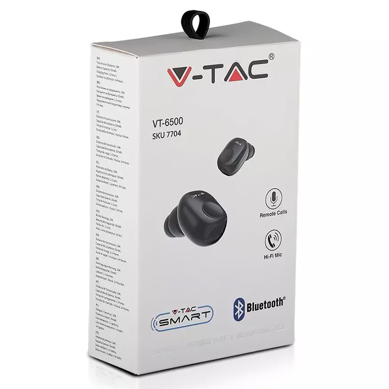 V-Tac CASCA BLUETOOTH EAR BUDS 55MAH - NEGRU