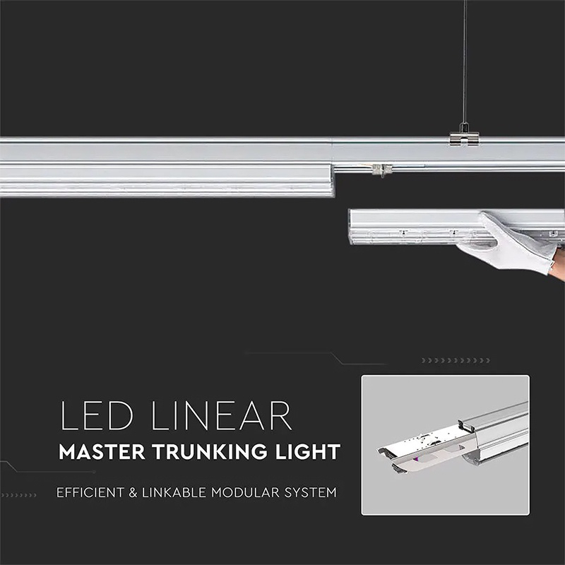 Sistemul Linear Trunking LED este o soluție eficientă din punct de vedere energetic și costuri reduse pentru întreținere, alternativă la fluorescența liniară tradițională într-o varietate de aplicații industriale, comerciale și de asamblare ușoară. Este soluția optimă pentru sistemele de iluminat convenționale și, de asemenea, excelente pentru din punct de vedere al intalării, acestea având costuri reduse de instalare