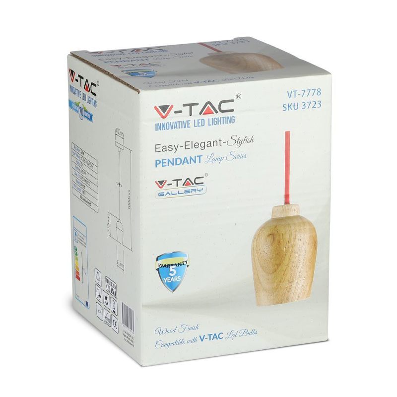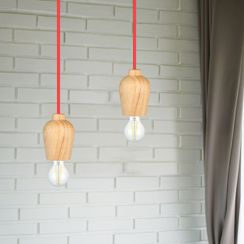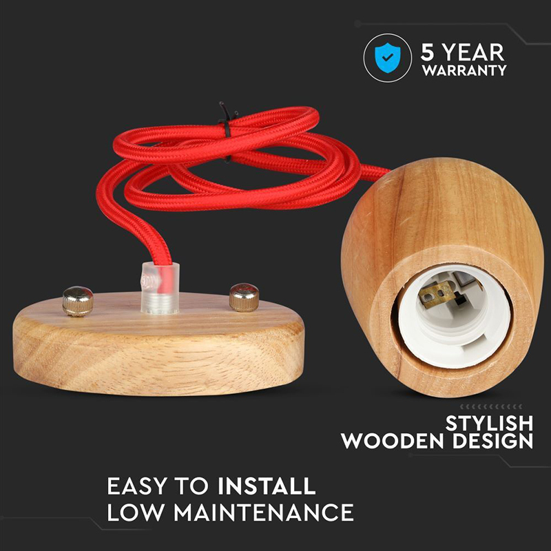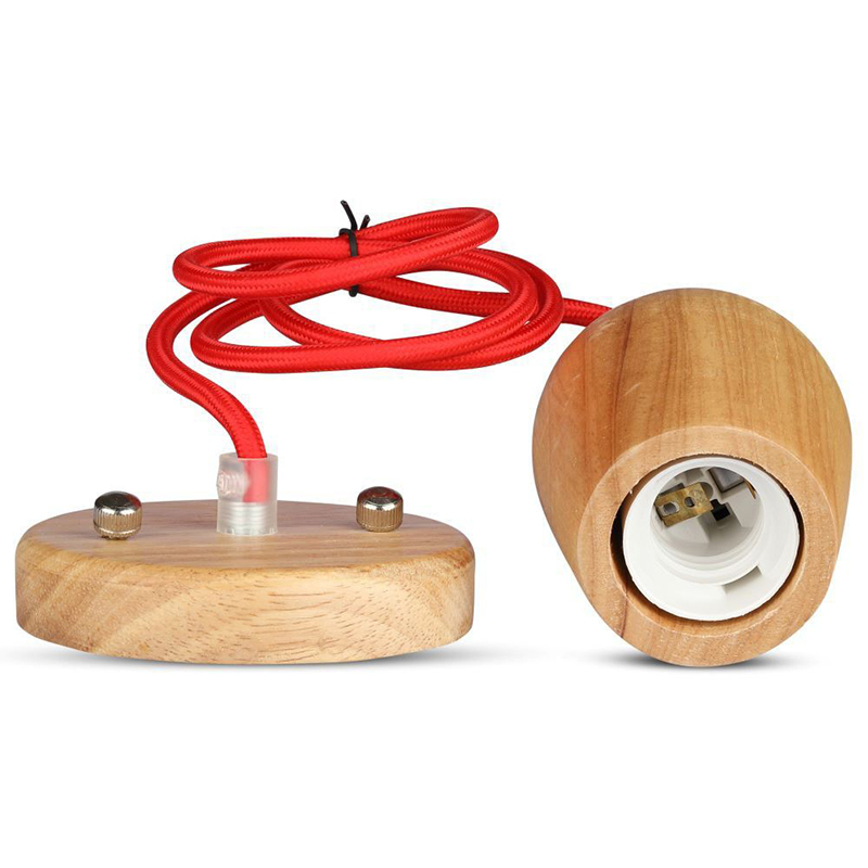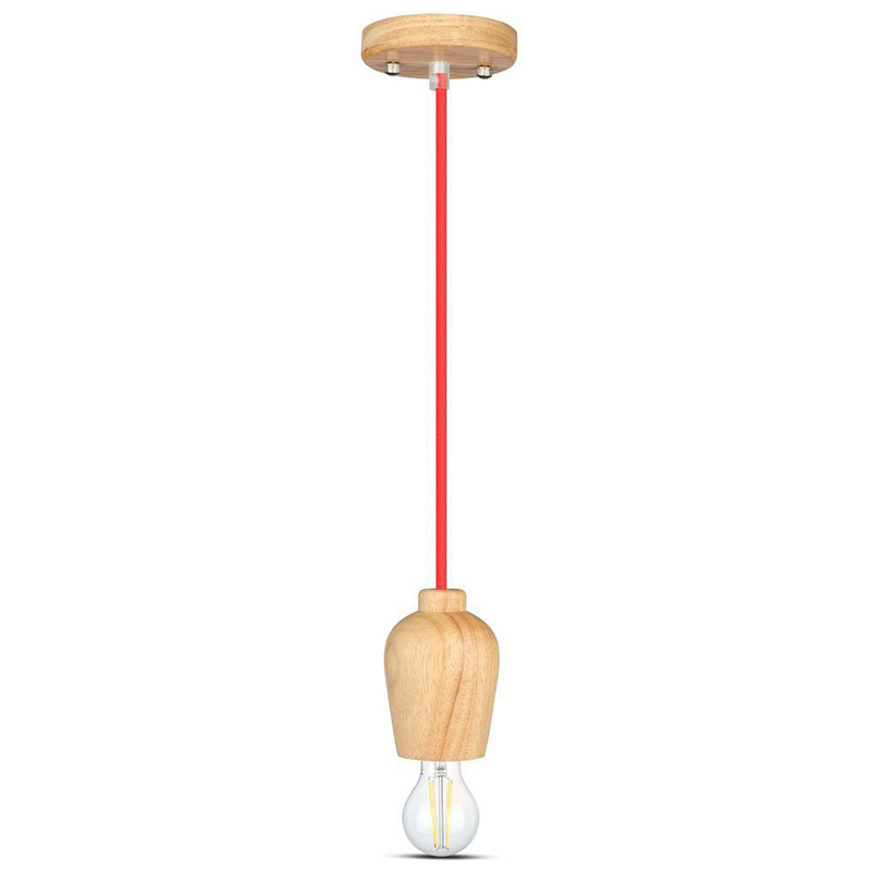 V-Tac PENDUL TAVAN SOCLU E27 LEMN - ROSU