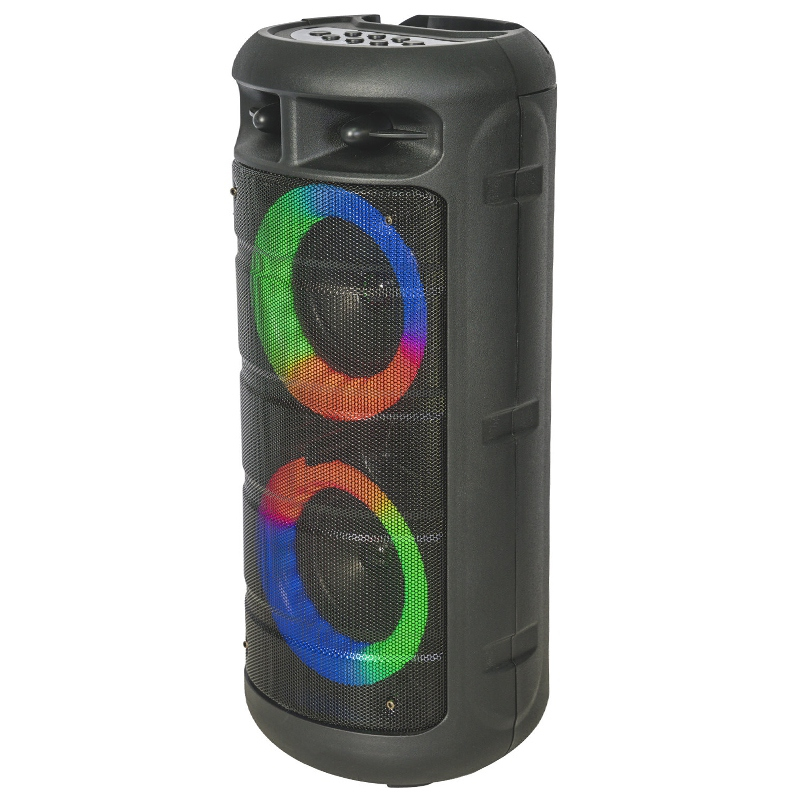 Difuzor autonom, ale cărui difuzoare atrăgătoare nu numai că reproduc un sunet grozav din diverse surse, dar halourile lor LED din jurul conurilor creează o atmosferă de petrecere. Doar conectați un microfon și sunteți gata să mergeți pentru o noapte de distracție.