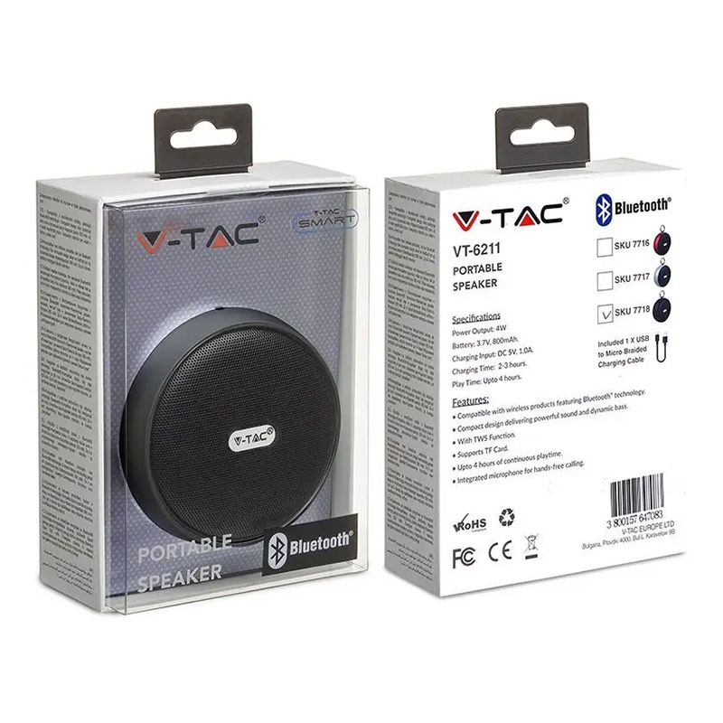 V-Tac MINI BOXA BLUETOOTH PORTABILA 4W - NEGRU