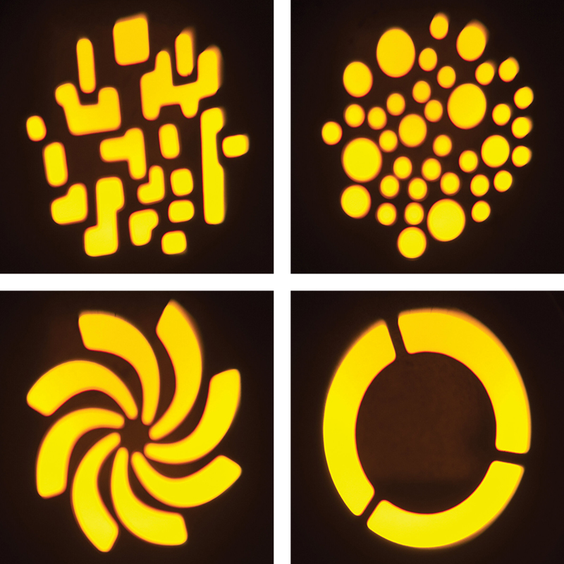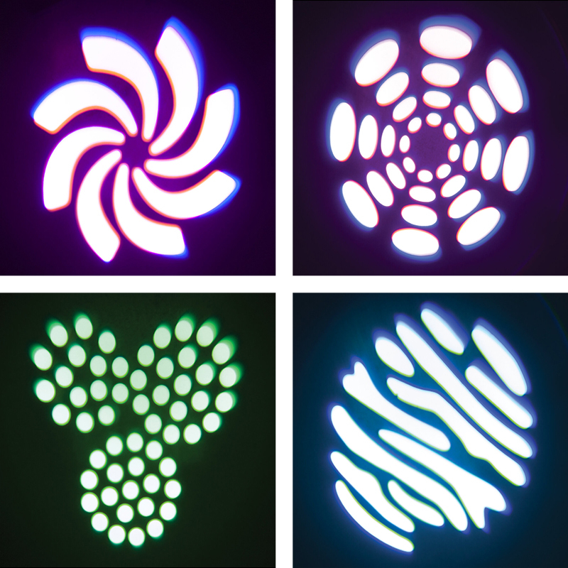 Cap mobil puternic de 10 W cu gobo și roată de culori.