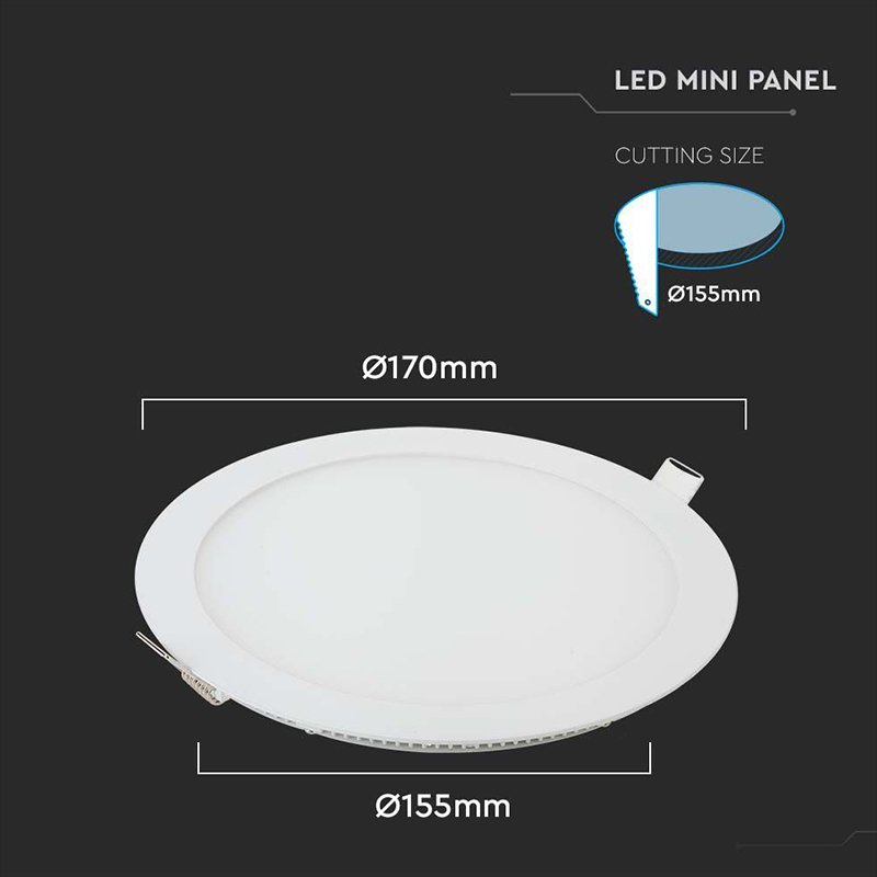 V-Tac PANOU LED ROTUND INCORPORABIL 12W 4000K ALB NEUTRU