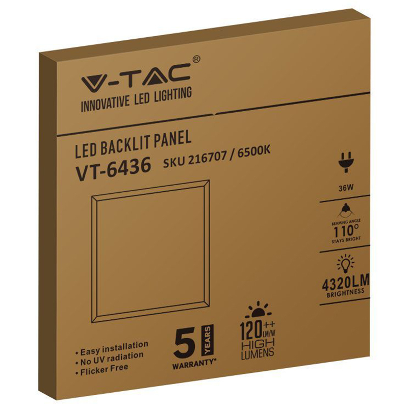 V-Tac PANOU LED 36W 120LM/W INCORPORABIL 4000K ALB NEUTRU