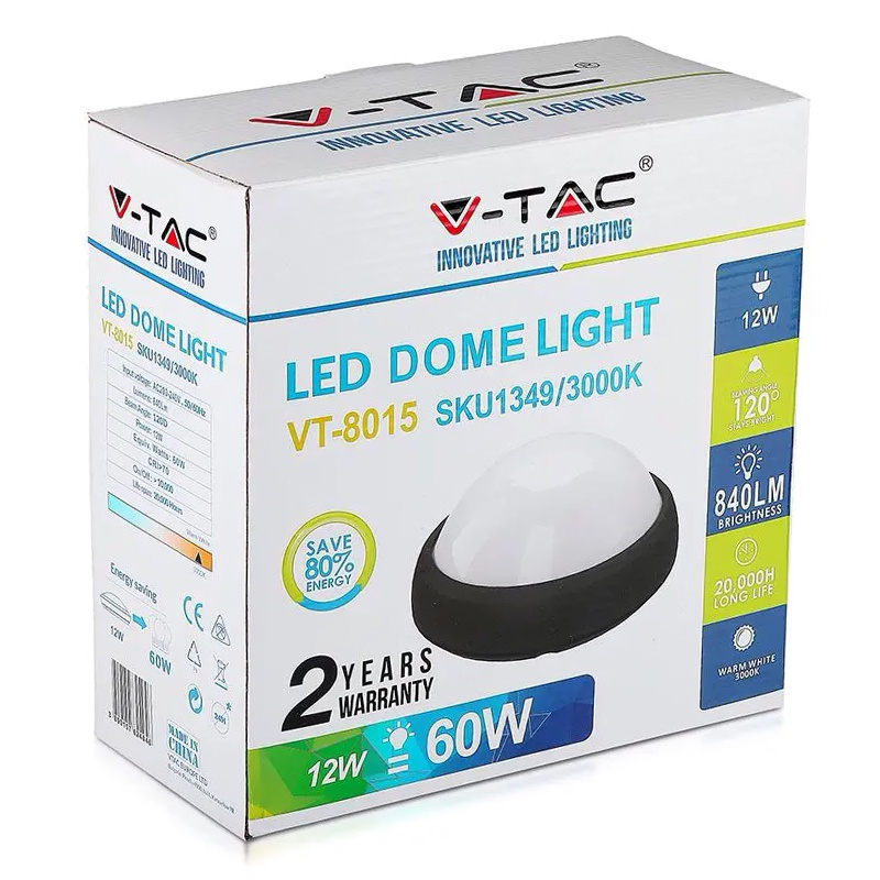 V-Tac APLICA ROTUNDA LED 12W IP54 3000K ALB CALD