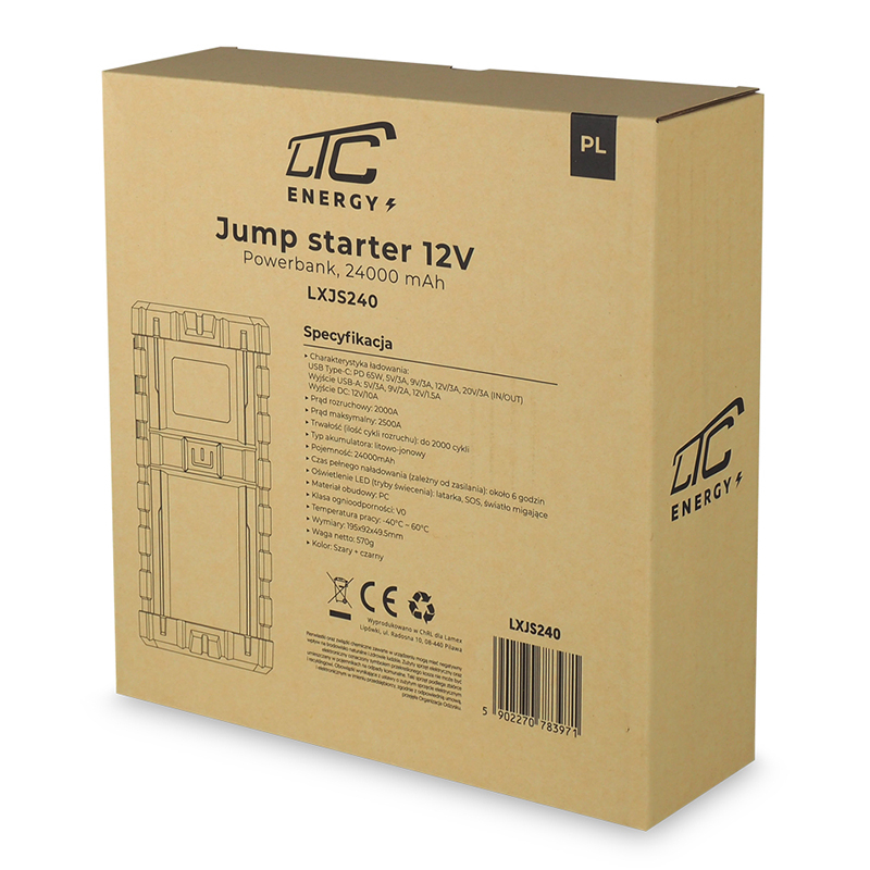 O soluție ideală pentru toți utilizatorii care prețuiesc calitatea, capacitatea mare și multifuncționalitatea. Jump starter 12V are o capacitate de până la 24.000 mAh, are o lanternă încorporată, utilă, cu trei moduri de funcționare și un afișaj cu indicator de încărcare.