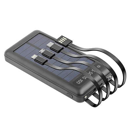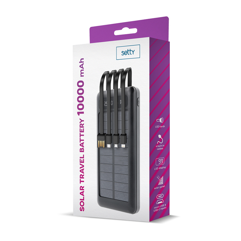 Pentru a încărca acest power bank într-un mod ecologic, așezați dispozitivul la soare, cu celulele solare în sus și încărcați bateria. Poate fi încărcat și cu cablurile încorporate. Cu acest Power Bank, puteți încărca mai multe dispozitive simultan (10,5 wați împărțiți între cele 2 dispozitive) și există posibilitatea de a încărca de 3 ori un smartphone cu un power bank complet încărcat.