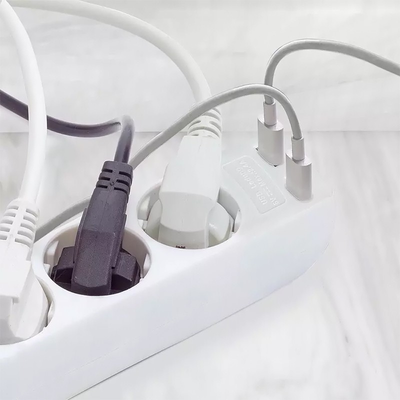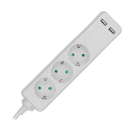 Prelungitor cu 3 cai, 2 porturi USB, cablu 3 x 1.5 mm2, lungime 1.5 m