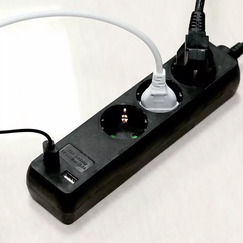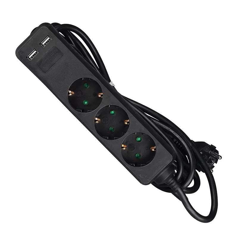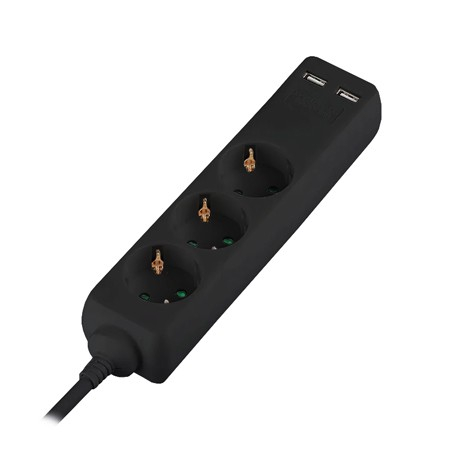 Prelungitor cu 3 cai, 2 porturi USB, cablu 3 x 1.5 mm2, lungime 5 m