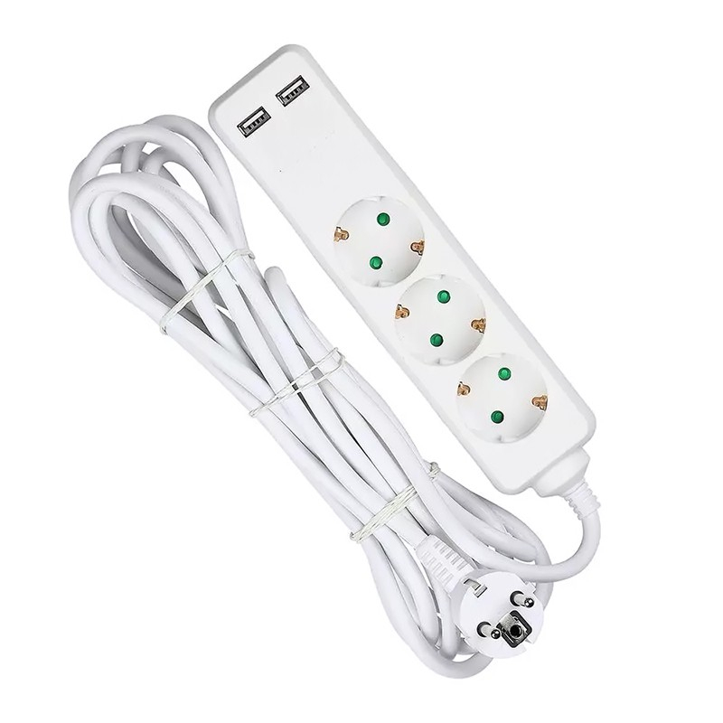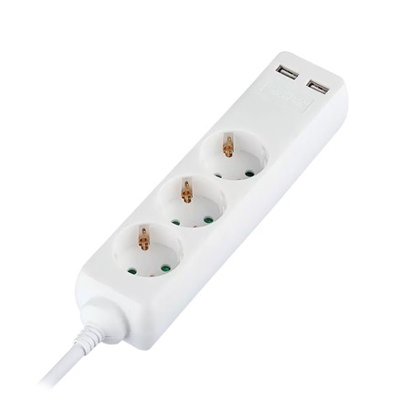 Prelungitor cu 3 cai, 2 porturi USB, cablu 3 x 1.5 mm2, lungime.5 m