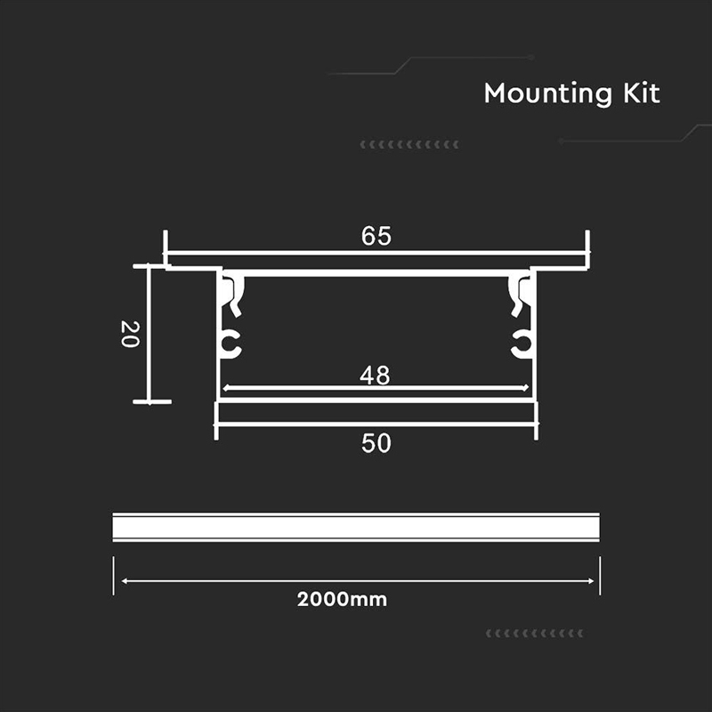 V-Tac PROFIL ALUMINIU PENTRU BANDA LED 2M 50MM X 20MM