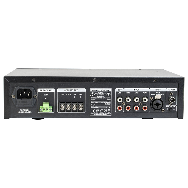 - Ieșiri impedanță scăzută: 4-16 ohmi, linie 70V și 100V