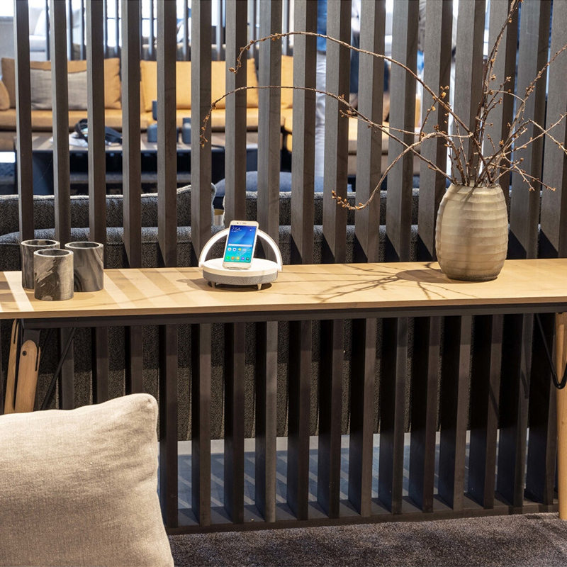 Porniți și stingeți lumina și reglați luminozitatea printr-o simplă atingere, în funcție de cum doriți să o utilizați: ca veioză sau lampă de noptieră. Conectați-o prin conectorul USB la un alimentator pentru a încărca bateria încorporată. și/sau smartphone-ul dvs., plasându-l deasupra.