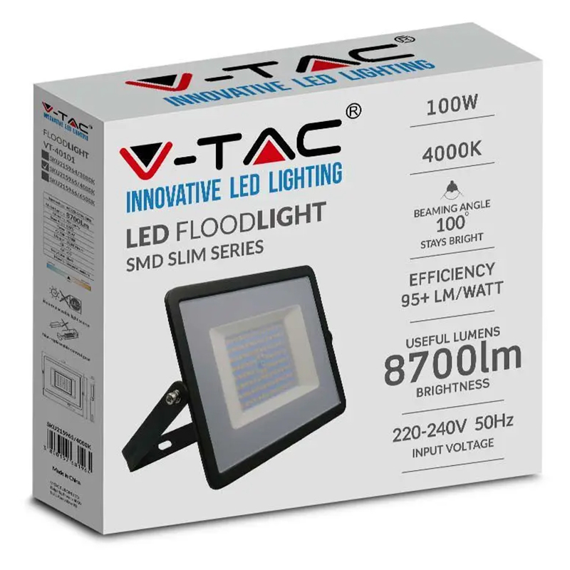 V-Tac REFLECTOR LED SMD 100W 4000K IP65 - NEGRU