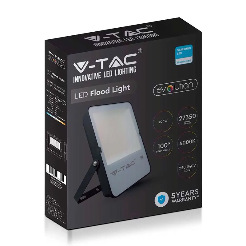 V-Tac REFLECTOR LED SMD 200W 137LM/W 4000K IP65 CIP SAMSUNG - NEGRU/GRI