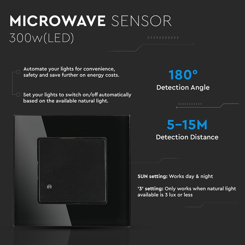 V-Tac SENZOR MISCARE 180GR 1200W MAX - NEGRU
