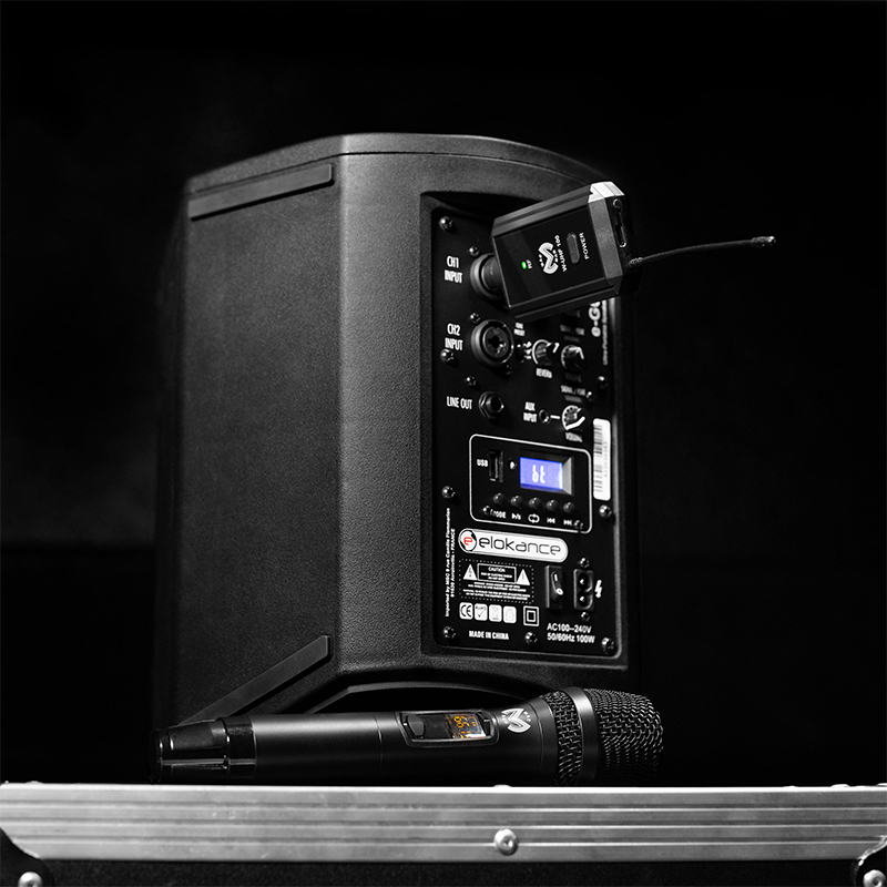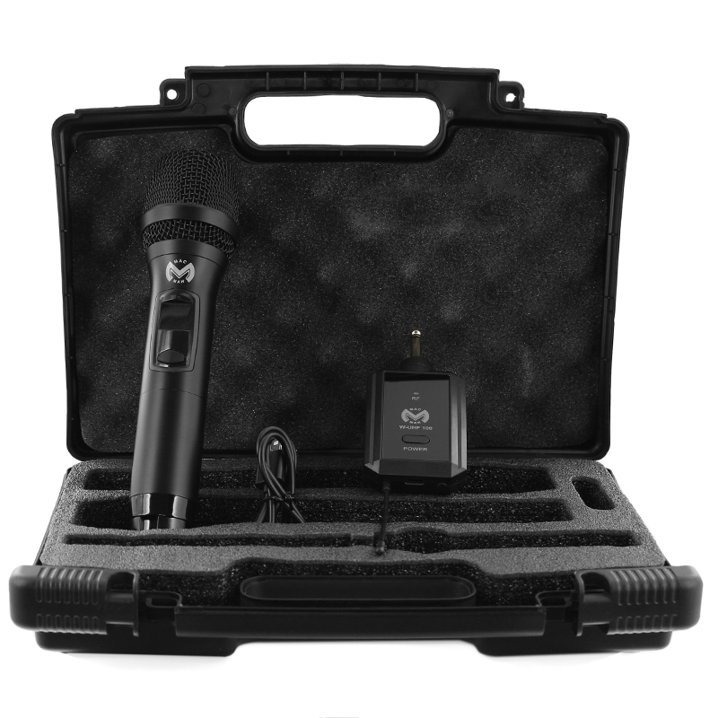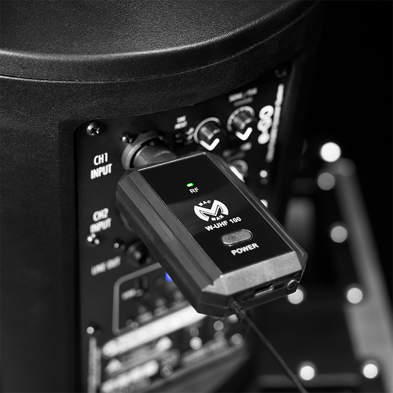 Mac Mah W-UHF 100 M este un set vocal profesional UHF ideal pentru adăugarea unui microfon fără fir la orice difuzor echipat cu o intrare pentru microfon cu fir jack de 6,35 mm.