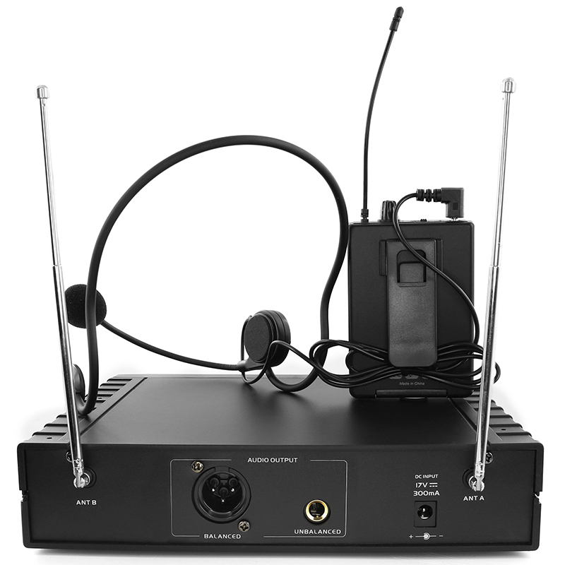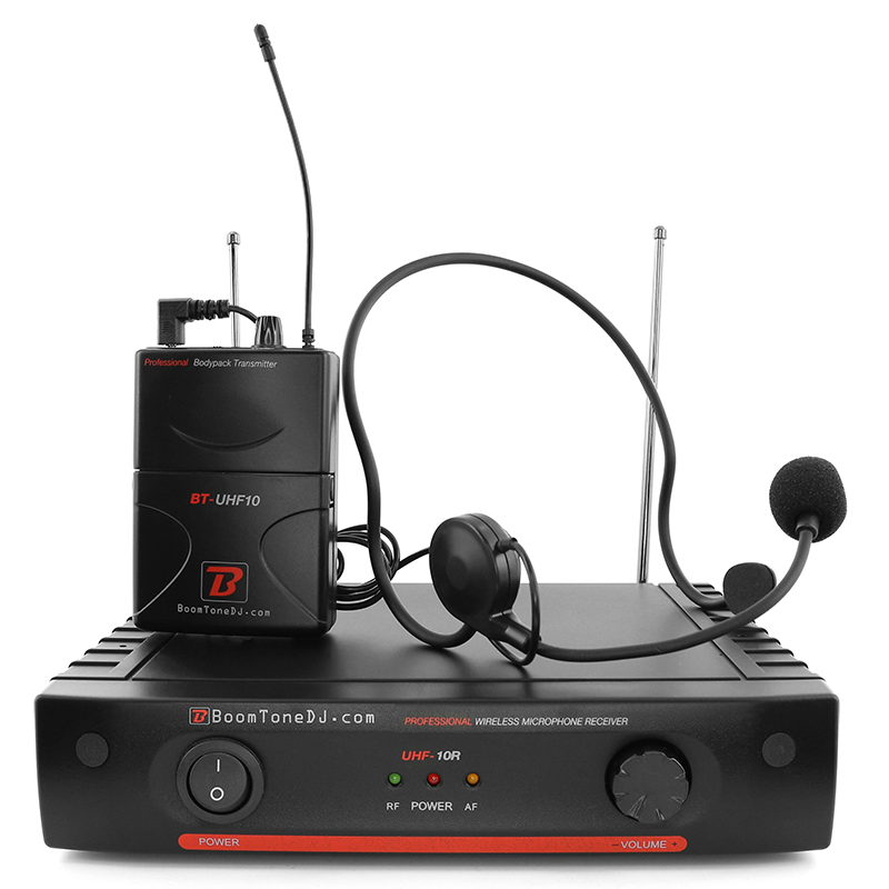 Sistem profesional de microfon de mână fără fir UHF, care include un receptor UHF-10R și un microfon pentru cap/lavaliera și o curea BT-UHF10
