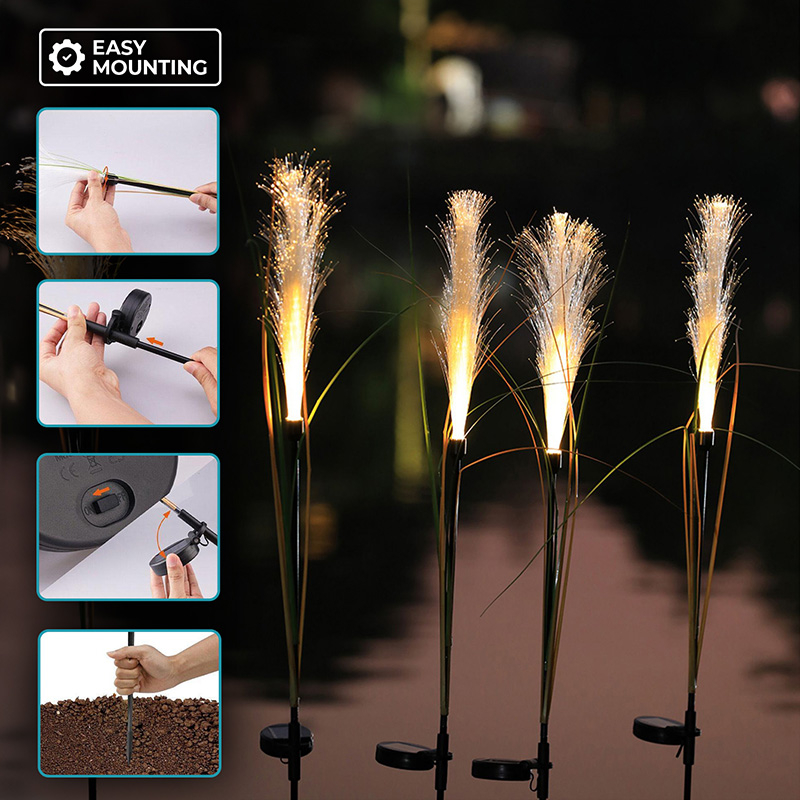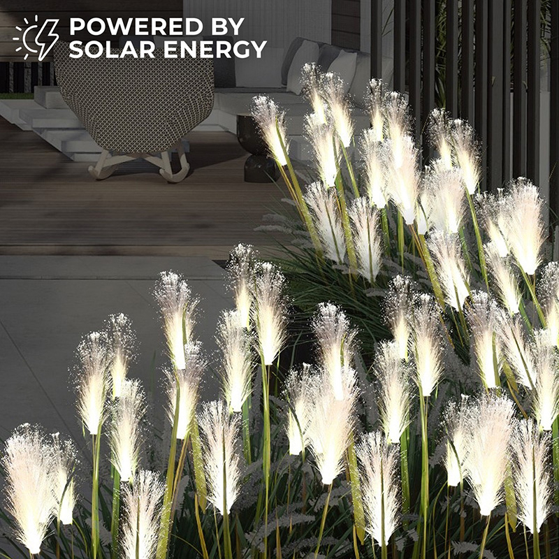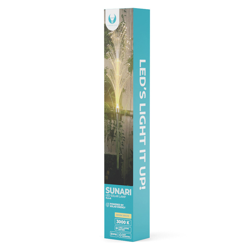 Lampa solară LED SUNARI de la Forever Light este o soluție elegantă și funcțională pentru orice grădină. Designul său decorativ, sub formă de iarbă de 100 cm înălțime, se îmbină frumos cu vegetația, creând o iluminare ambientală într-o nuanță caldă de 3000K.