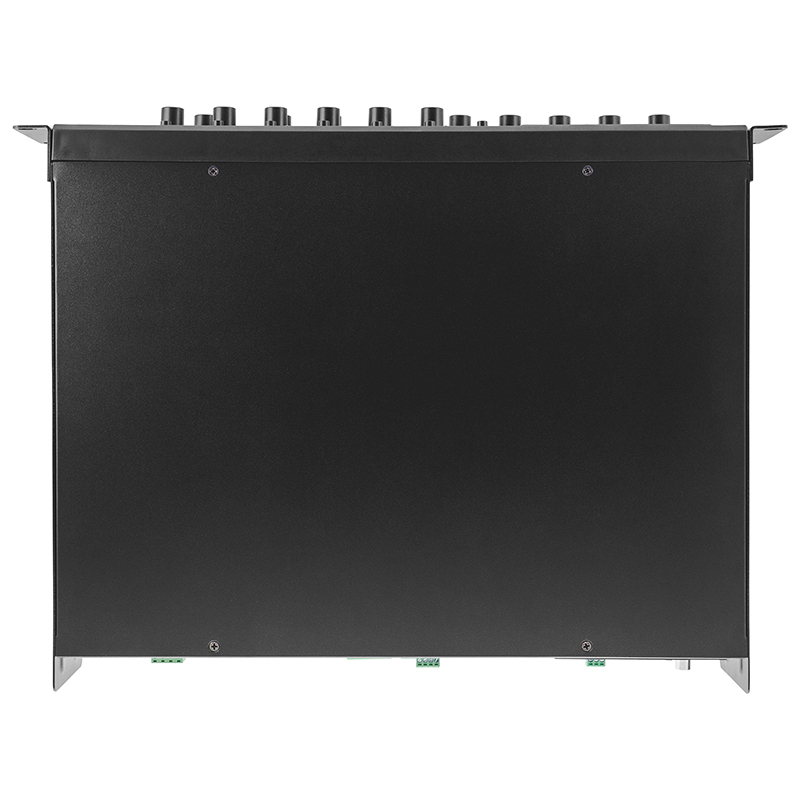 Furnizat cu un kit de rack de 19 inchi, acest amplificator este gata pentru integrare profesionala in orice spatiu tehnic, in timp ce telecomanda cu infrarosu ofera confort operational din orice punct al instalatiei.