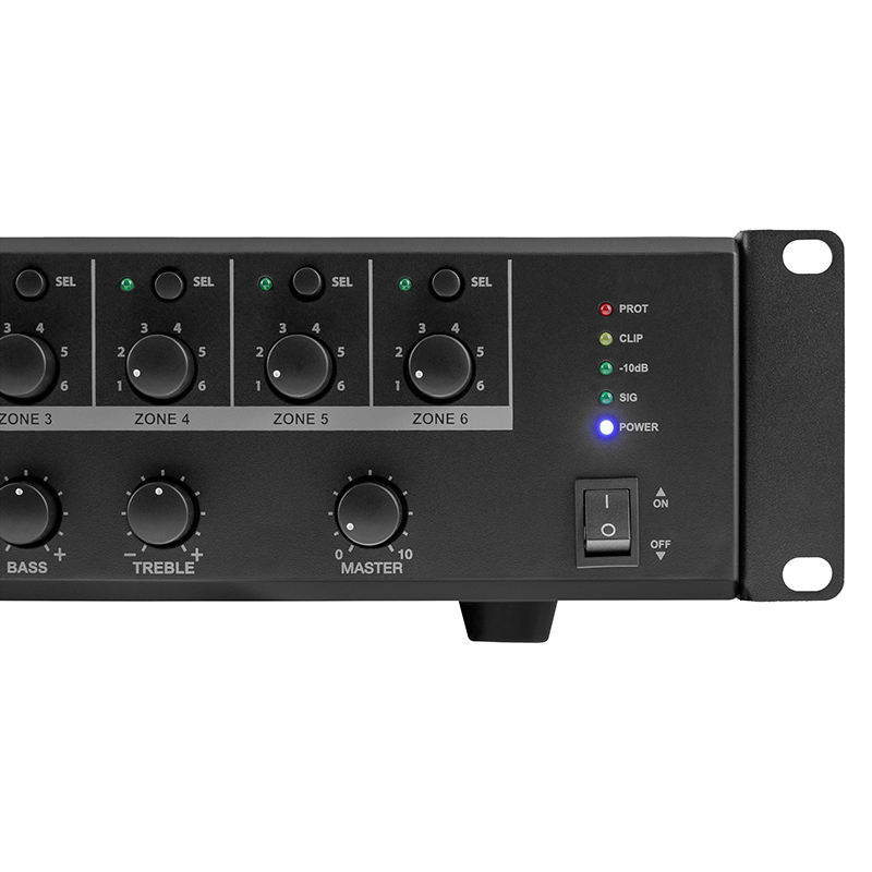 Managementul sunetului MPA240Z este optimizat prin egalizarea pe două benzi la ieșire și un VU-metru pentru monitorizarea precisă a nivelurilor de ieșire.